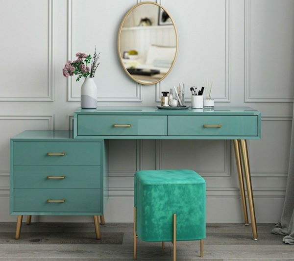 - Трансформер с откидным зеркалом: Лучшее решение для квартир-студий или маленькой спальни. В сложенном виде это элегантный письменный или рабочей стол.