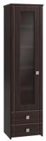 Шкаф-пенал со стеклом Изабель ИЗ-63К предназначен для белья или книг, оснащен для вашего удобства четырьмя полками и двумя выдвижными ящиками. Модуль может быть собран "левым" или "правым". Крышка выполнена из ЛДСП 25 мм, дно ящиков двп 3 мм. Фурнитура: металлизированные квадратные ручки, петли с доводчиками, телескопические направляющие полного выдвижения без доводчиков.