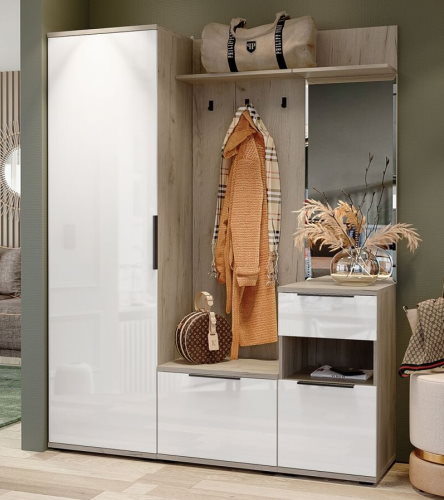 Шкаф-пенал Альянс (59) 435.04 - входит как в модульную гостиную Альянс, так в в модульную прихожую Альянс Корпус изготавливется из высококачественного ЛДСП в цвете Дуб крафт. Фасады дверей из ДСП которое выкрашивается в четыре слоя высокоглянцевой краски в автоматизированной покрасочной камере. Петли на дверях четырехшарнирные с системой плавного закрывания.  Ручки из черного прочного пластика. Ножки также из черного пластика. Наполнение шкафа - две полки и полноразмерная штанга для одежды.