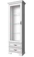 Однодверный шкаф с витриной Tiffany 1V2S произведен в Белоруссии на мебельном предприятии Anrex. Модель имеет простую конструкцию с одной дверцей и двумя ящиками. Чтобы достичь максимальной вместительности, производитель довел высоту конструкции до 212 см. Ее ширина составляет 69 см. При таких параметрах шкаф-пенал вмещает большой объем вещей и не загромождает пространство.
